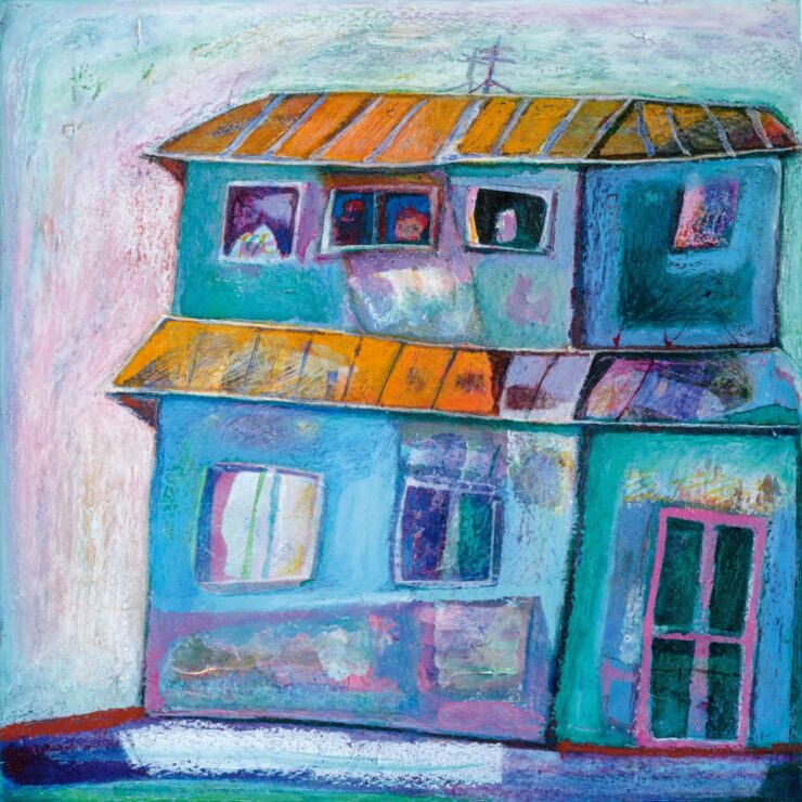 I mainly draw pictures on paper or canvas using colors such as painting oils, acrylics and crayons. I try to put colors on paper without deciding what or how to draw. Observing how they appear on paper or canvas, I often decide step-by-step how to proceed. Sometimes, I come across the dried and thinly painted colors with scratching touches. At other times, I come across brushstrokes with different colors, which are left unmixed, entangled with each other. The appearance of colors changes as I draw. It is fun! That is the way I draw and paint. I always hesitantly produce my works at the mercy of paints and colors.