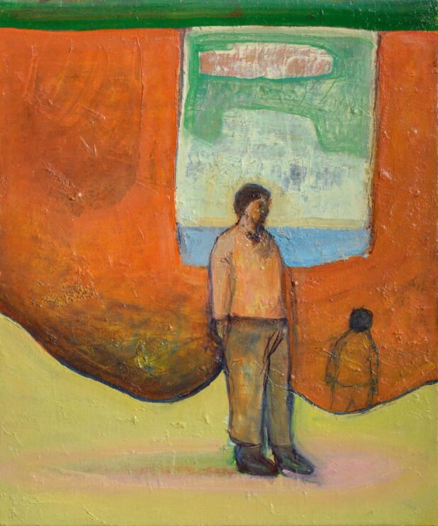 僕は主に油絵具やアクリル絵具、クレヨン等を用いて紙やキャンバスに絵を描いています。何をどのように描こうかといったことは曖昧なまま、紙の上に絵具を乗せてみて、その様子を眺めながらどのように描いていこうかを考えて制作していくことが多いように思います。絵具が薄く掠れたように乾いていたり、いくつかの異なった色が混ざりきらず、絡まるようにして筆跡を形作っていたりと絵具の現れ方は描く度に違っていて面白く思います。
